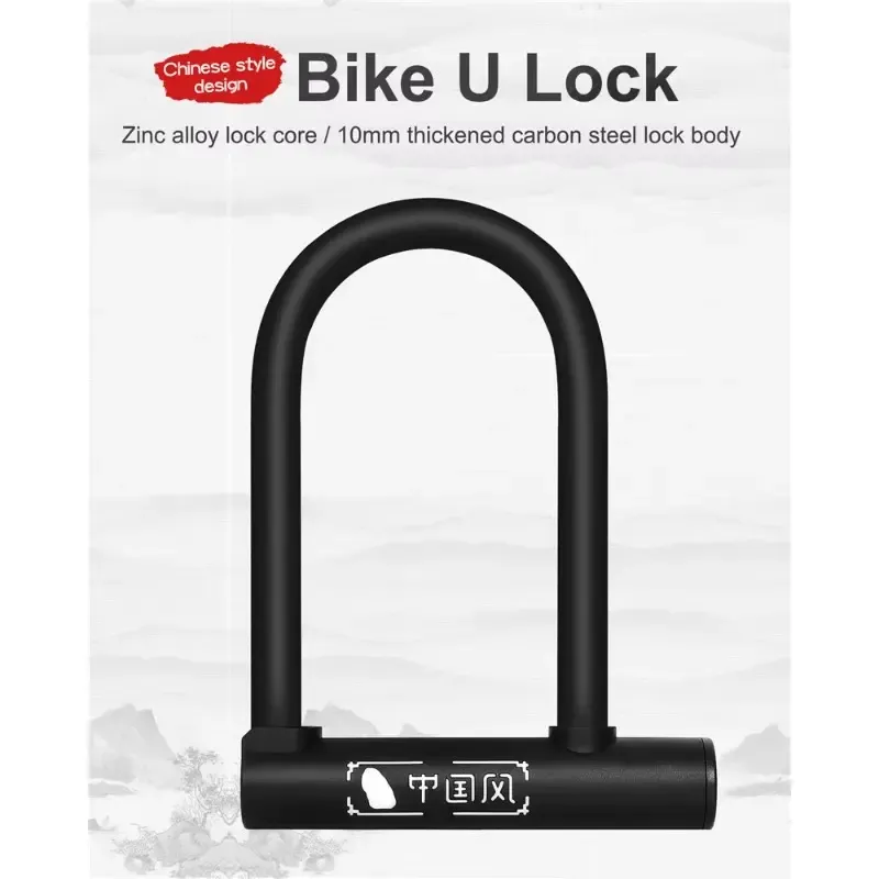 WEST BIKING Chinese Style U-shaped Bicycle Lock Popular Custom Security Anti Theft Bike U Lock With 2 Keys Password Alloy Lock Outdoor Cycling Accessories
